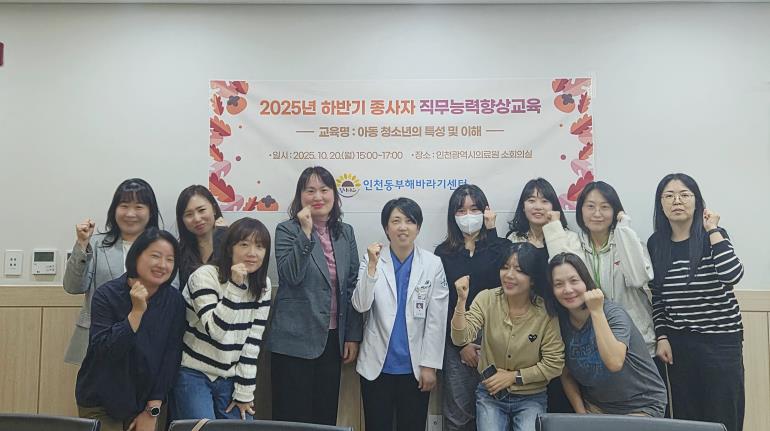 - 일시 : 2025. 10. 20.(월) 15:00 ~ 17:00 - 장소 : 인천의료원 행정동 3층 소회의실 - 내용 : 아동 청소년의 특성과 이해 등 |