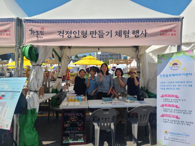 - 일시 : 2025. 9. 5.(금) - 장소 : 인천 동인천역 북광장 - 내용 : 걱정인형 만들기 체험 및 길거리 상담 유도 성폭력예방 관련 배너 설치, 기관 지원 안내 및 홍보 |